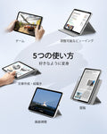 クリアな背面ケースと着脱可能なマグネットカバーの組み合わせにより、iPad Proを6通りの多彩なスタイルで使用可能です。