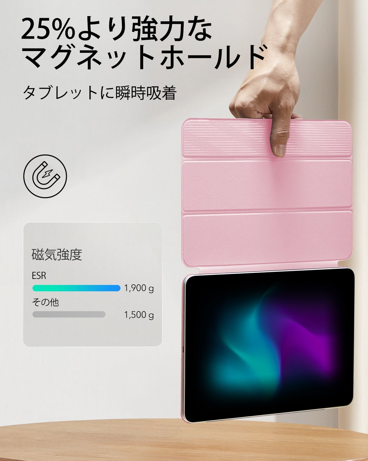 【強力な磁気吸着】:パワフルなマグネットでケースがiPadにしっかり固定されます。