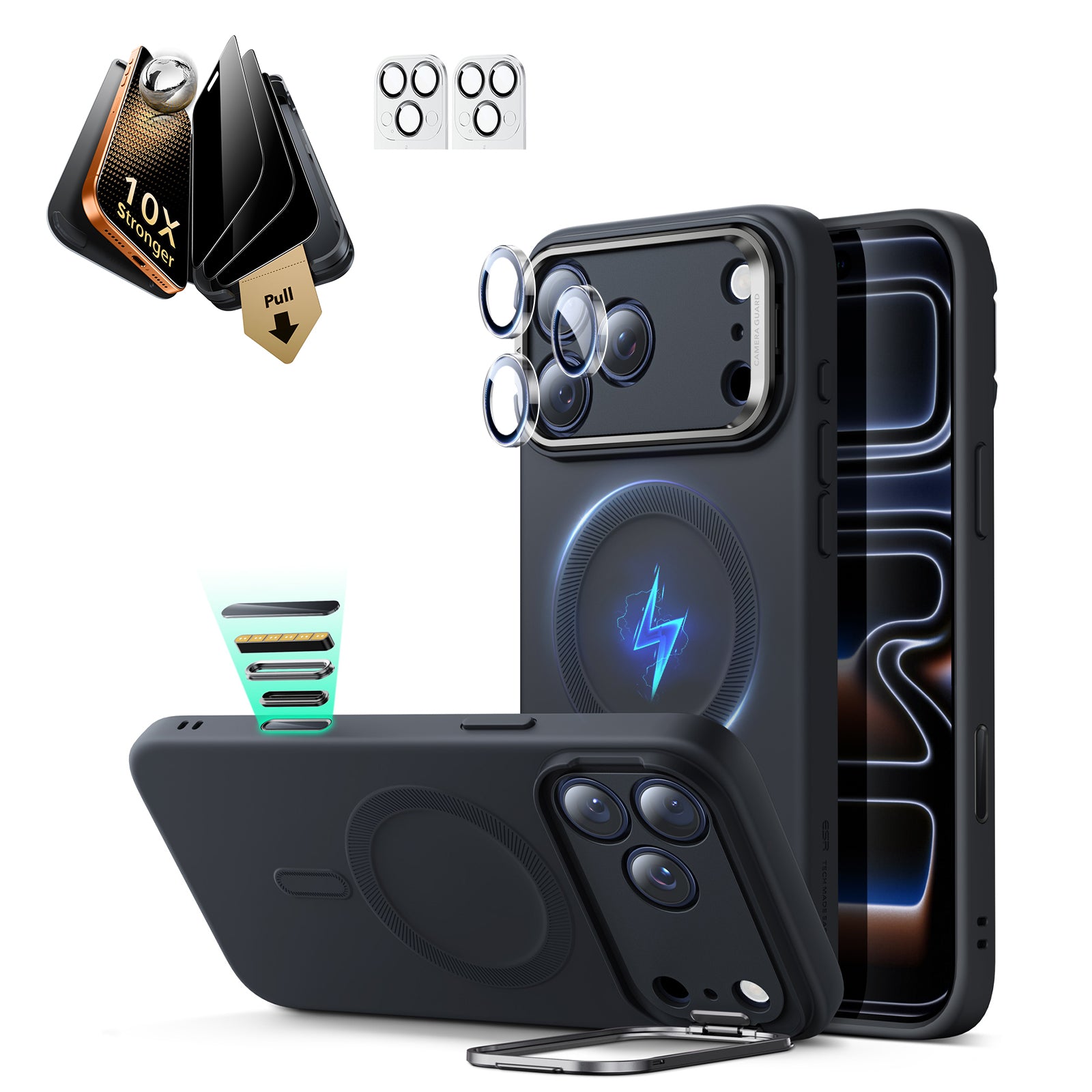 iPhone 17 Pro Max Bundle Cloud Soft Magnetic Case (Stash Stand) and Armorite Pro Privacy Screen Protector - Black