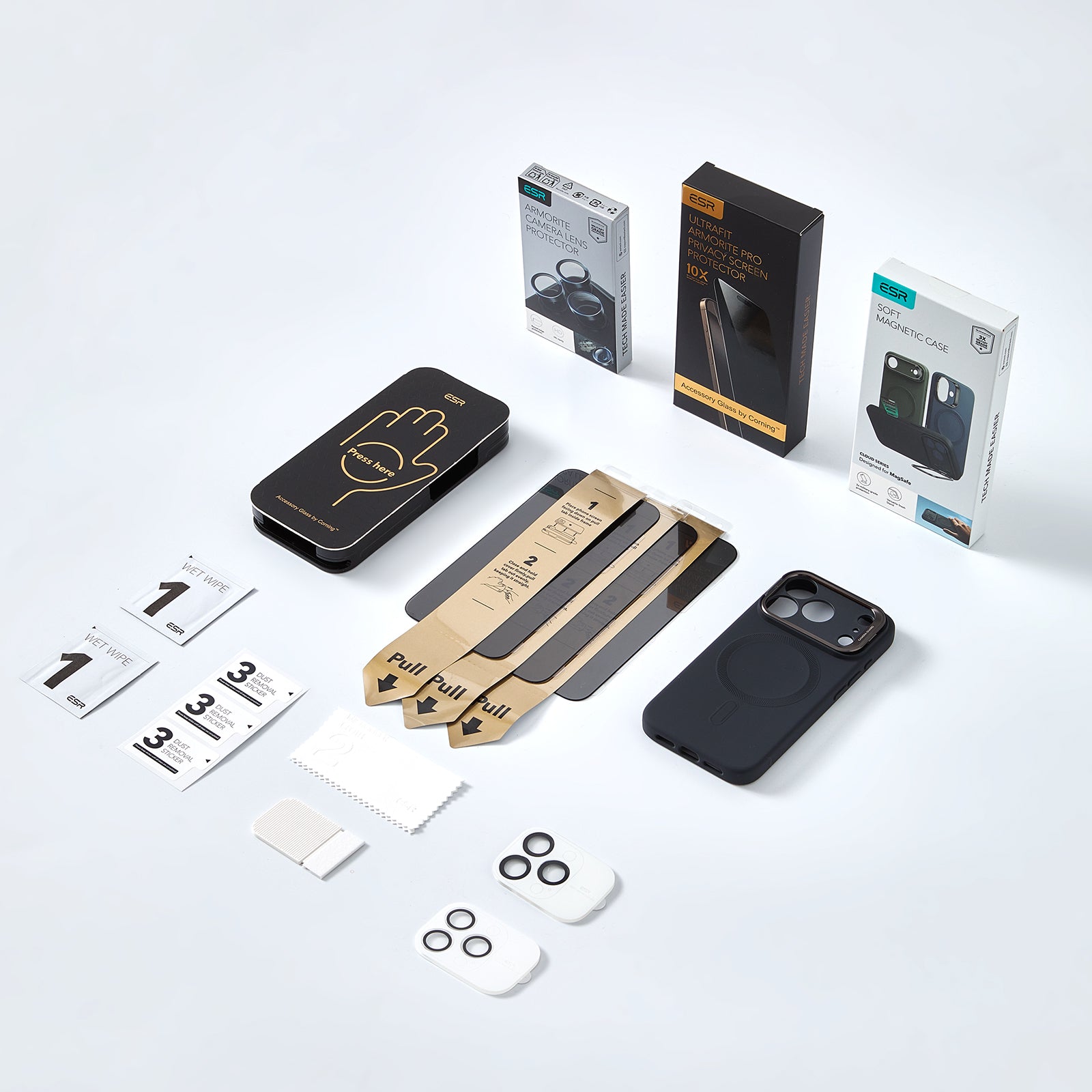 Easy Installation: screen protectors are easy to apply with the UltraFit tray, cleaning kit, and dust-resistant adhesive for a smooth, bubble-free finish; lens protectors can be effortlessly attached or removed with the included alignment guide and tool for a perfect fit