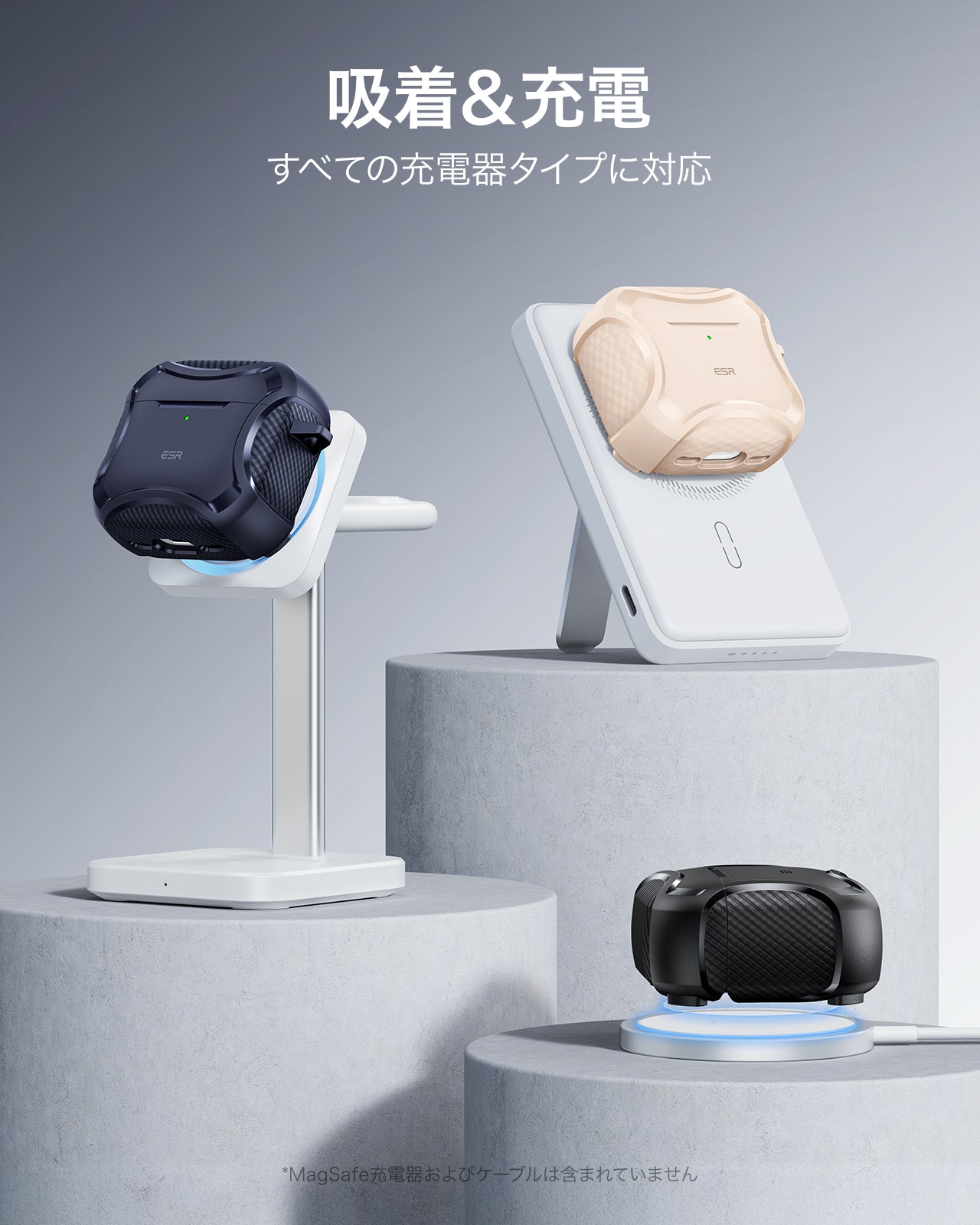 Wireless Charging Ready: Strong magnets in the back of the case ensure a secure lock and easy alignment on MagSafe chargers, letting you enjoy tap-and-go wireless charging for your earbuds without removing the case